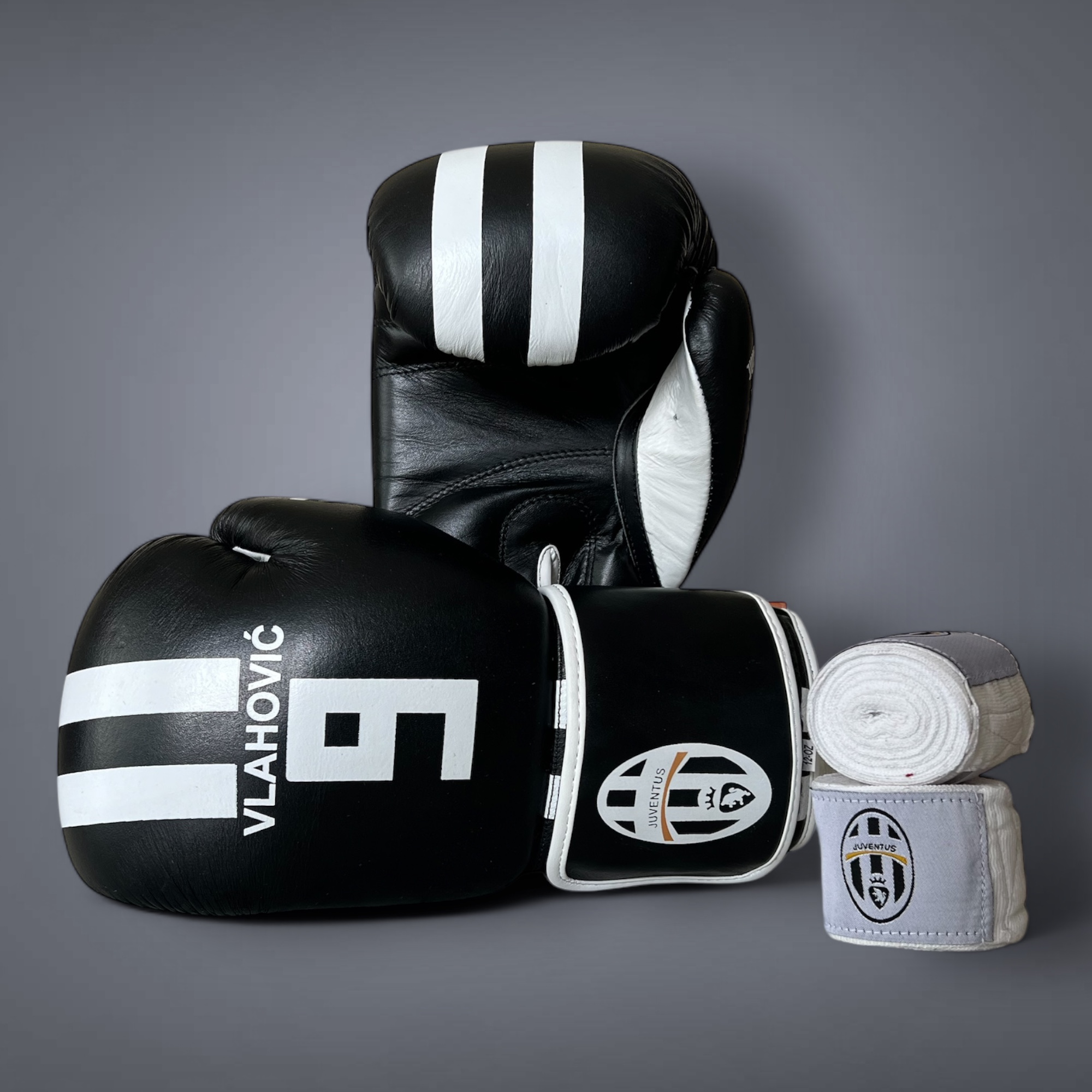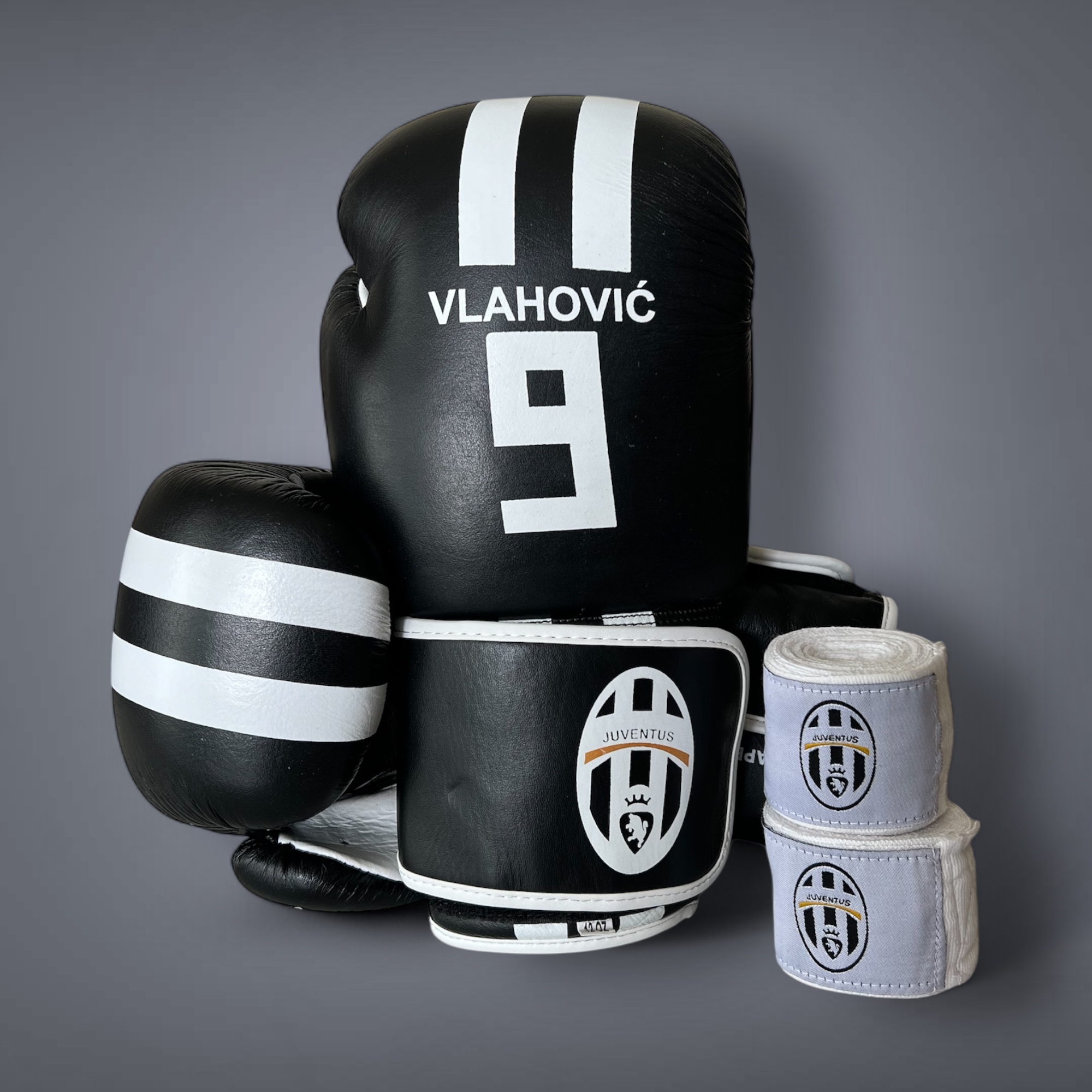 Precision, strength, and elite craftsmanship — the Juventus Vlahović Limited Edition Boxing Gloves & Wraps Set is built for champions.