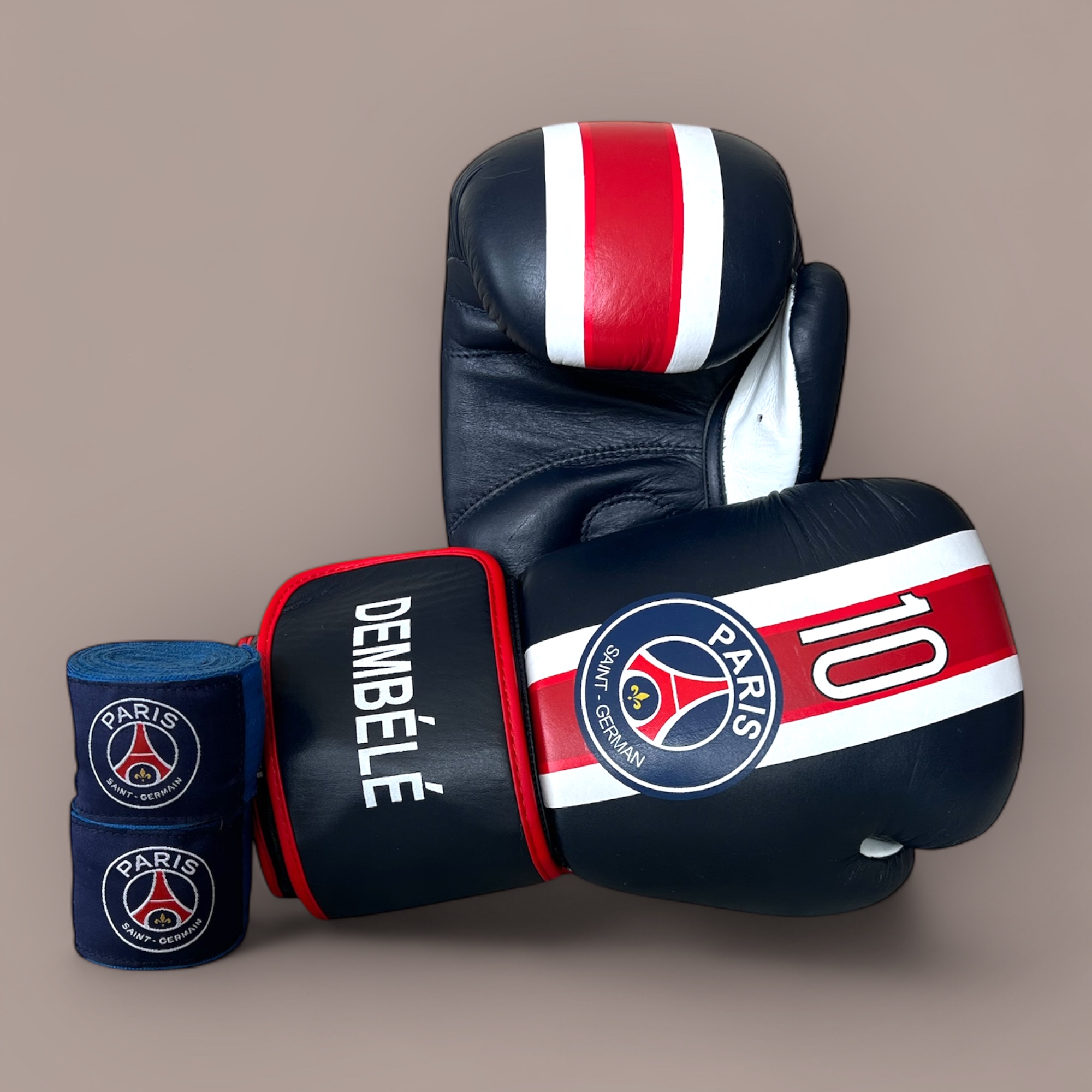 The Paris Saint-Germain Dembélé Limited Edition Boxing Gloves & Wraps Set fuses the iconic energy of PSG with the explosive talent of Dembélé’s No. 10 legacy.